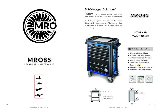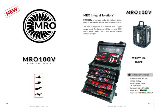The MRO Integral Solutions brand is the result of cooperative work between BIJA Industrie and its 20 years of experience, and the most emblematic training center in the aeronautics sector. MRO Integral Solutions is a unique range of tooling compositions dedicated to aeronautical maintenance and production.